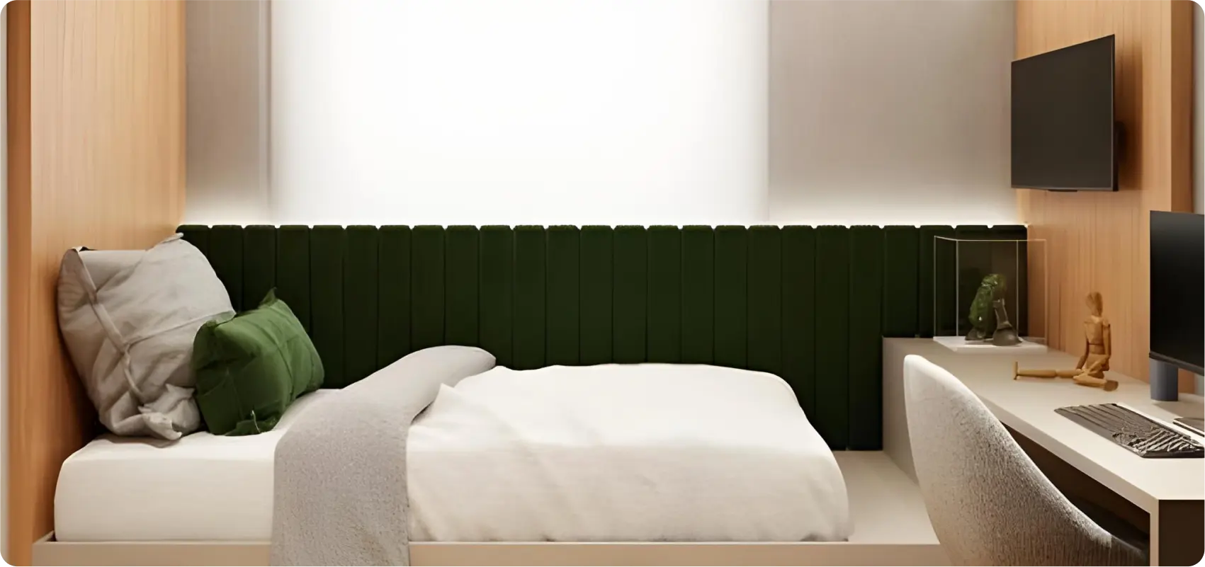 People often forget the ceiling, but in small rooms it really matters. A light or minimal ceiling design draws your eye upward and makes the space feel taller. And just like that, your bedroom starts looking more airy and open.